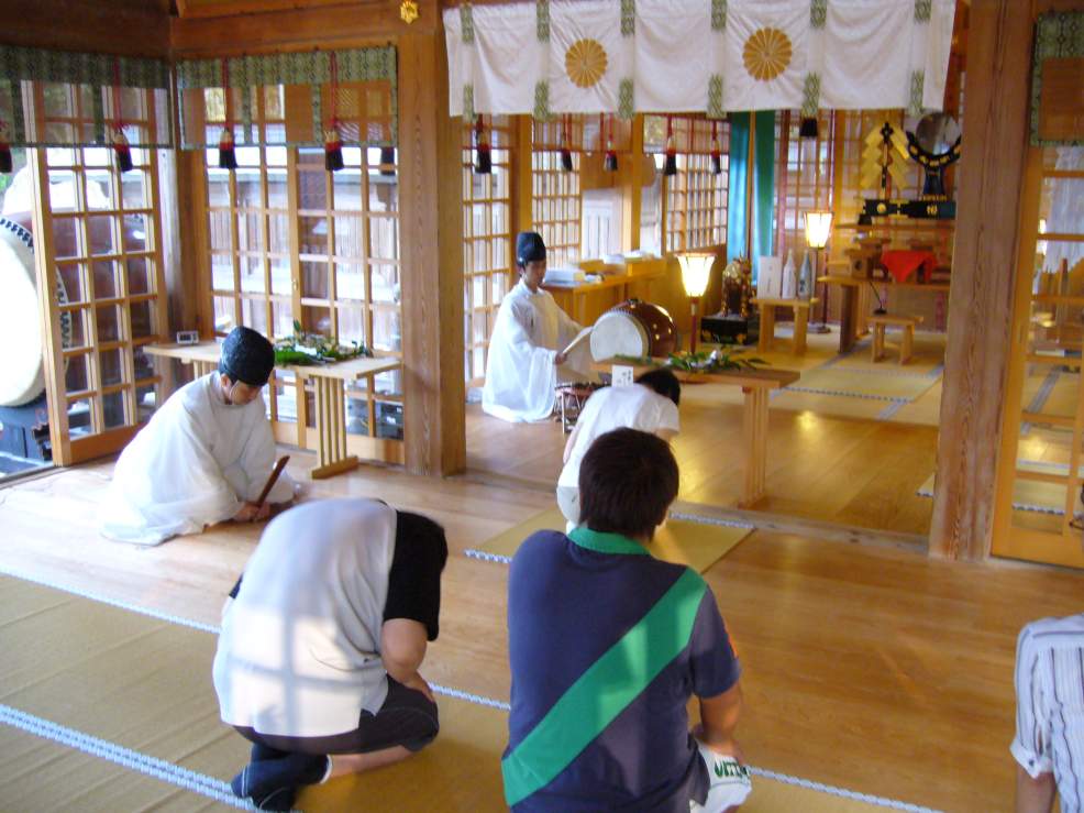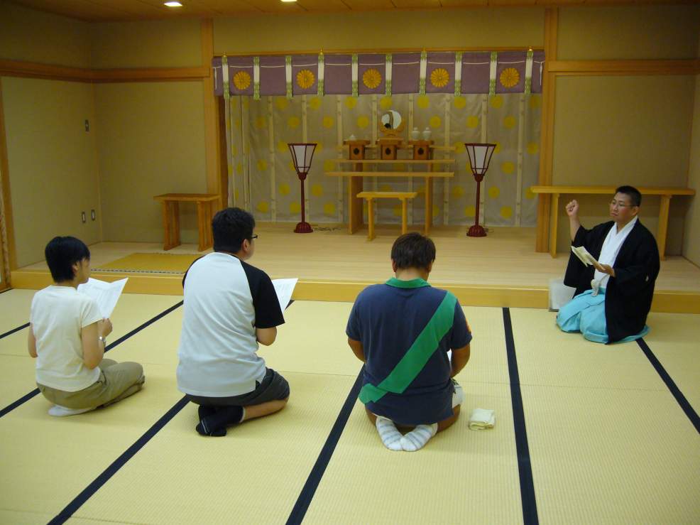 皆さん、少しお疲れですが、金田禰宜より日本古来特有の「神道」について、説明を受けました。「神道」は決して学校では習うことができないため、非常に勉強になったと思います。